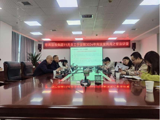 為進(jìn)一步加大普法宣傳教育力度,弘揚(yáng)憲法精神,加深全體員工法治觀念。11月27日,市兩型投集團(tuán)開(kāi)展了本年度第11期員工學(xué)堂暨普法宣傳專(zhuān)題講座,由集團(tuán)公司黨委委員、副總經(jīng)理?xiàng)钗奈渲鞒,邀?qǐng)湖南天聲律師事務(wù)所李科主任主講。