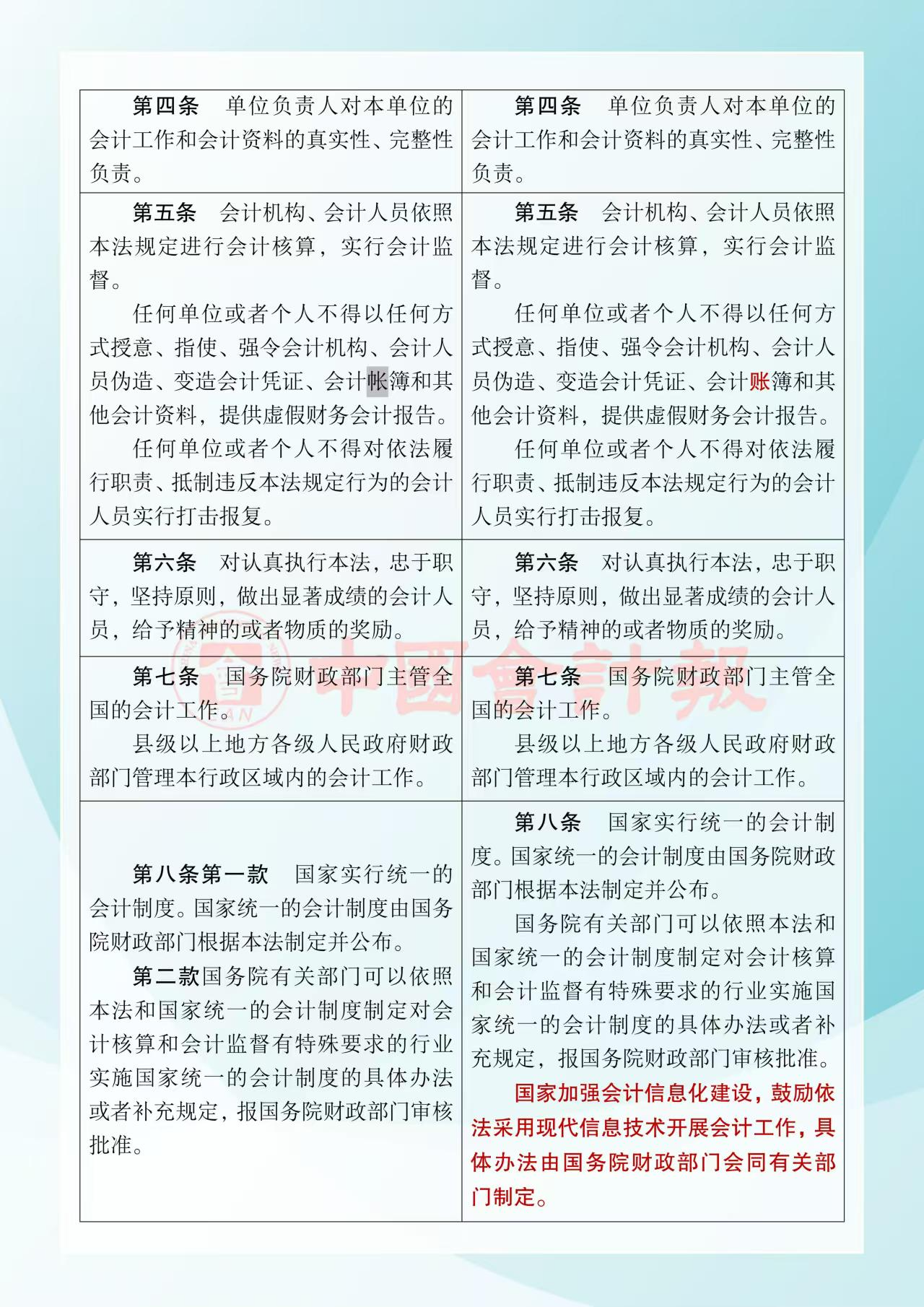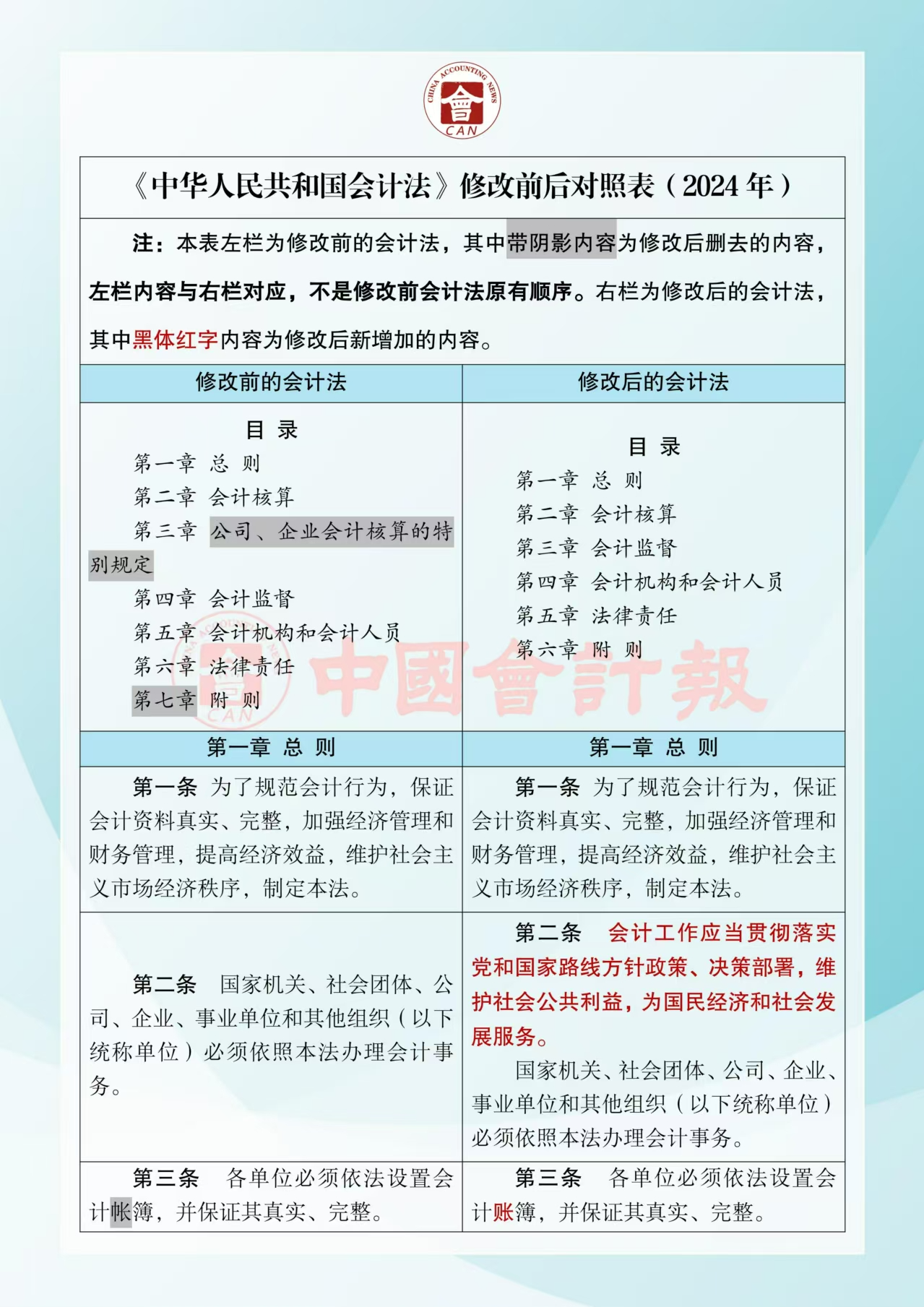 《中華人民共和國(guó)會(huì)計(jì)法》修改前后對(duì)照表(2024年)